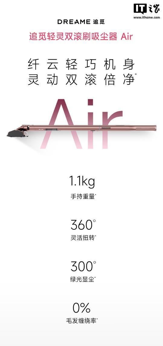 IT之家 3 月 26 日消息,追觅旗下“轻灵双滚刷吸尘器 Air”现已在京东开售,其主打 1.1 千克手持重量,提供 360 度灵活扭转,首发价 1499 元。
